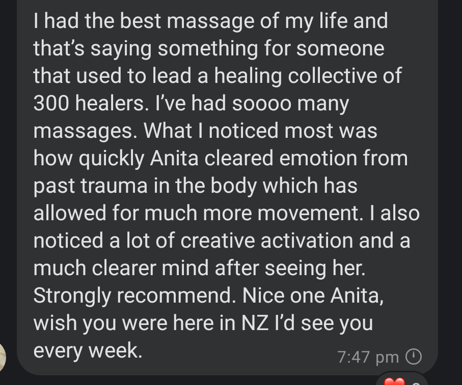 Anita is truly a gifted healer & I highly recommend the combined session & Hapé ceremony if you are wanting to make big shifts within yourself. So grateful to have had this experience with Anita!