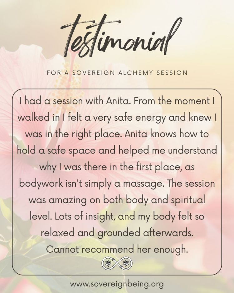 I had the most profound and liberating release. I am ever so grateful for Anita’s personal touch and knowledge. Her energy is pure, healing and uplifting.